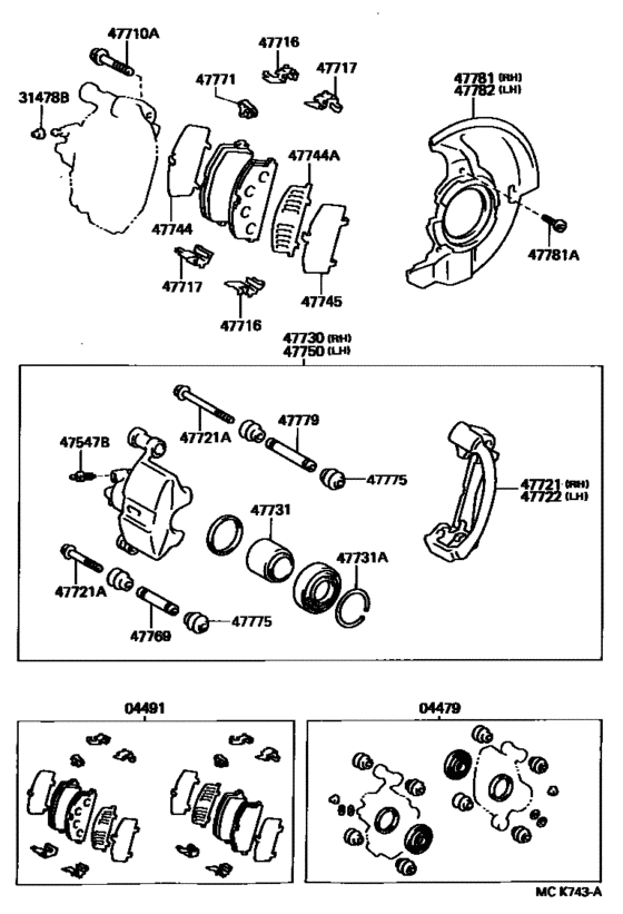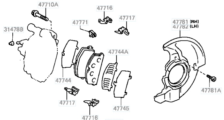 1 gasket /90430-10074 2 plates in pad support /47717-32031 and 47716-32031 1 bleeder plug /47547-20010 2 bleeder cap /31478-30010 |