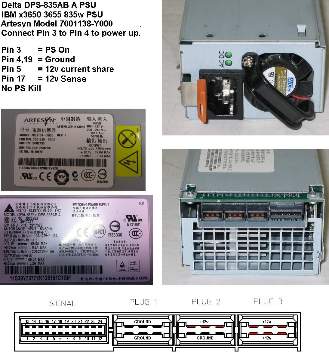 it has 2pcs IBM 24R2730 Artesyn 12V 69A 7001138-Y000 REV E ( 835 W ) adapter inside x3650 housing