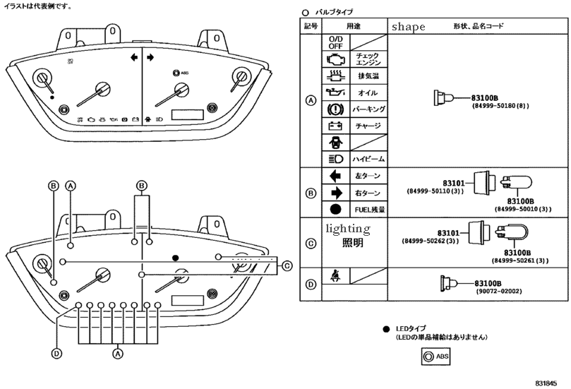 BULB, COMBINATION METER, NO.1, 12V?3.4W (3 pcs) /84999-50261