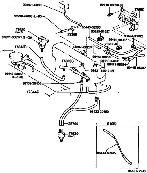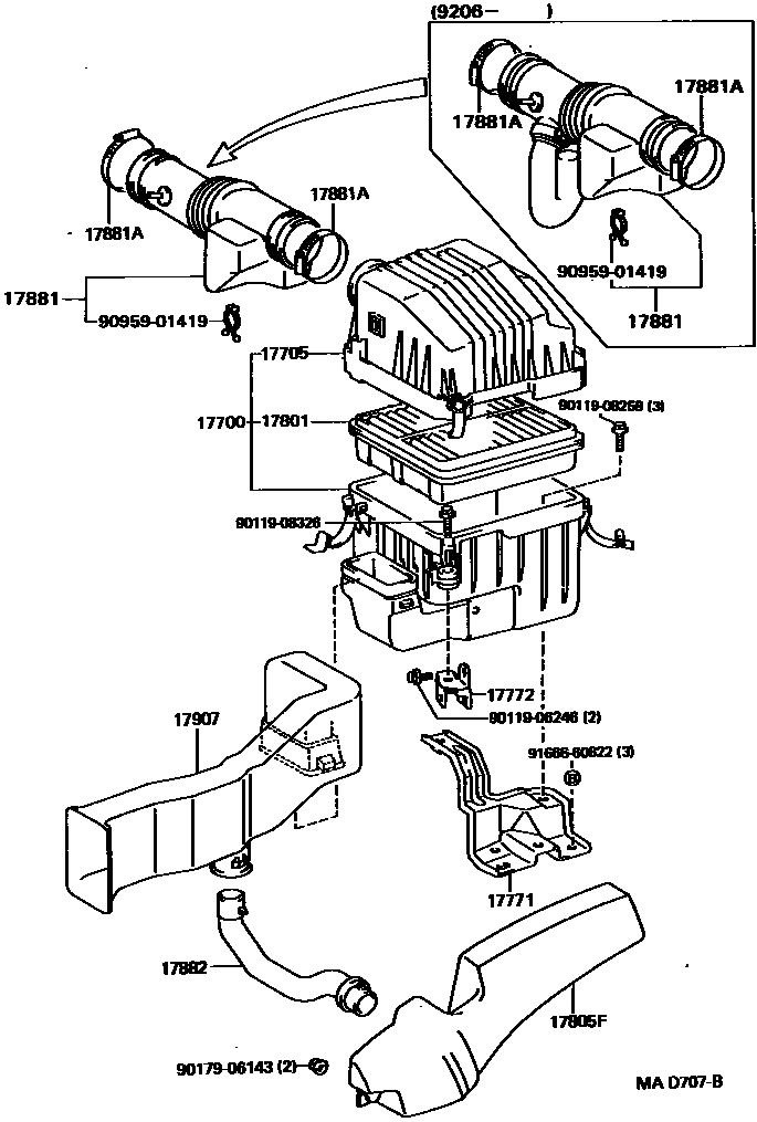 and replace air hose+filter AIR CLEANER FILTER element /17801-11050 There is top side engine sump air hose needs replacement /12262-11050 (1pc) and /12261-11100 (1pc) |