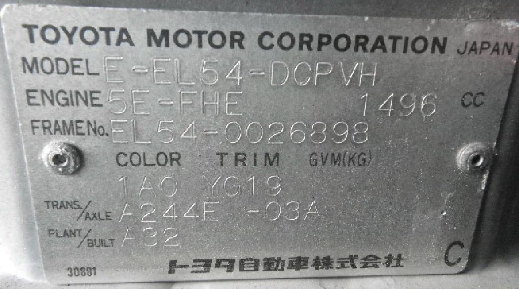 From Cynos EL54 (EL54-DCPVH and EL54C-DKPVH; GEAR SHIFT TYPE: 4FC; AT should be A244E):