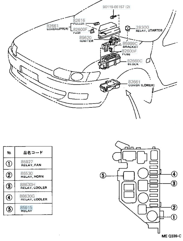 found BREAKER ASSY, WIRING CIRCUIT, NO.1 /82650-20011 and heater relay /90987-04002 on the left board and screw 93319-15010 lost to secure COMPUTER, ENGINE CONTROL /get \GOT |
